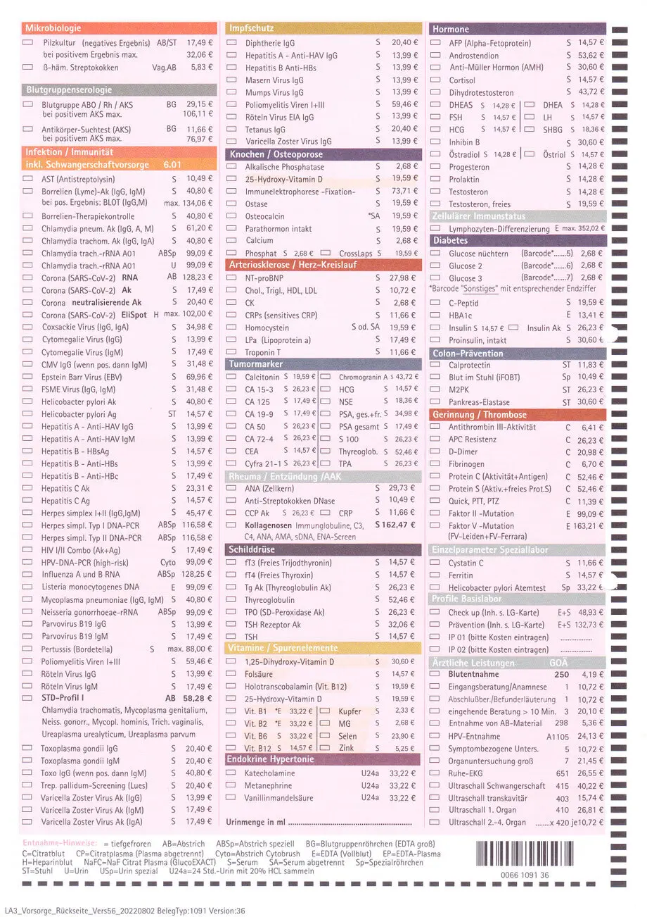 Notfalls würde ich in Deutschland die Gebühr von 19,59 EUR als individuelle Gesundheitsleistung (IGeL) aus eigener Tasche bezahlen, falls Ihr Arzt nicht bereit ist, die Kosten aus seinem Budget zu übernehmen.